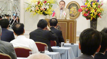 壇上でスピーチを行う当協会の久積副会長