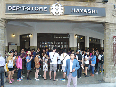 創業当時の面影を残して全面改装された林百貨店(台南市中西区忠義路) 入口に掲げられている林デパートの看板。これも当時のデザインを忠実に再現しているそうです 安全対策のために入場制限をするほどの大盛況です。同建物は台南市の史跡指定建築物で、台南市の特産品や日本からの輸入品を扱っているそうです。2ヶ月間のプレオープン期間中に10万人が来客したということです。 百貨店正面で記念撮影 レトロモダンな店内。台南市の特産品や日本からの輸入品を多く扱っているそうです 屋上は空中庭園が広がり、買い物客の憩いの場になっています。もう一段上の展望スペースにもここから登れます。 同じ屋上スペースに、昭和初期に実際に台南市であったという居酒屋が再現されていて大人気だということです。勿論飲食もできます 店内には大きな鍋が沢山あり、名物料理は「おでん」だそうです。「おでん」目当ての買い物客で賑わいます。台南に残る日本文化が垣間見えます