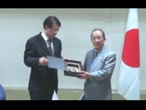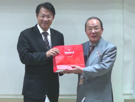 台南市を表敬訪問しました。顏純左・台南市副市長から記念品を頂いた当会の折目信也会長です。この動画のみ当会の動画サーバーにアップしたものですのでダウンロードに少々時間がかかります。予めご了承ください。