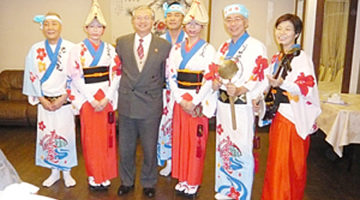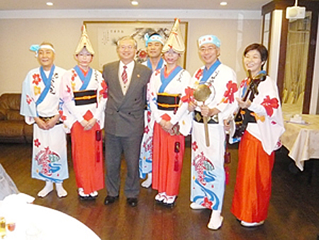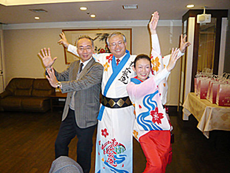 阿波踊りの衣装を着てご機嫌の蔡明耀処長