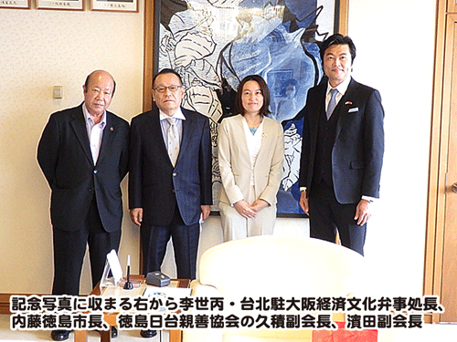 台湾の大阪領事館に相当する台北駐大阪経済文化弁事処の李世丙処長が10月15日、徳島市の内藤佐和子市長を表敬訪問されました。