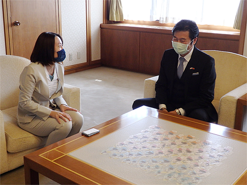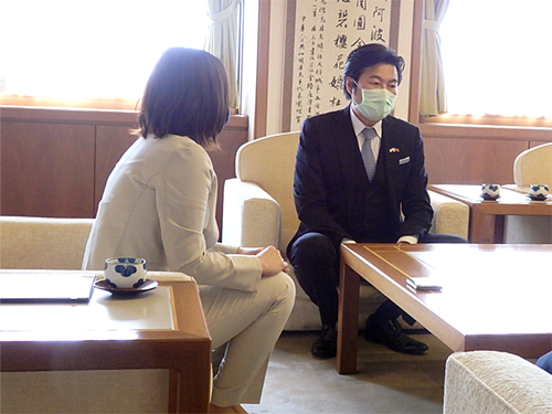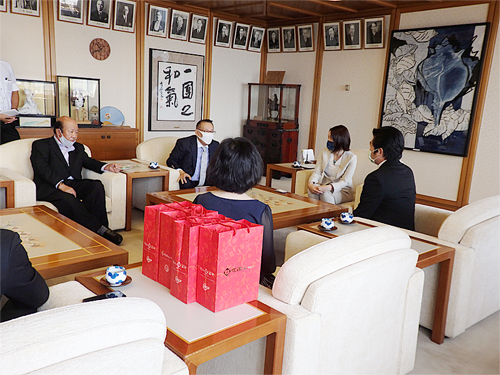 台湾との地域間交流の推進を呼びかけた李処長に対し、内藤市長は今年6月に台湾政府から医療用サージカルマスク2,500枚を寄贈して貰ったことへ御礼を述べ、友好交流協定を締結している台湾花蓮県吉安郷との交流活動を推進し「日台の絆を更に深めたい」と呼びかけました。